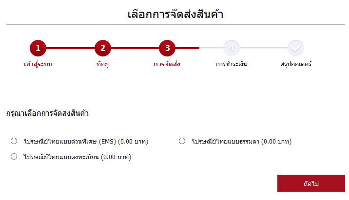 5. จากนั้นเลือกประเภทการจัดส่ง และกด ถัดไป