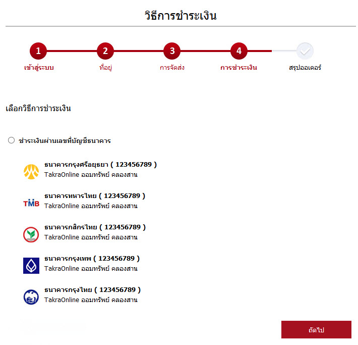 6. จากนั้นเลือกช่องทางการชำระเงิน และกด ถัดไป