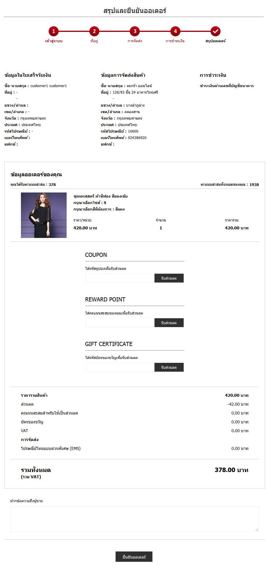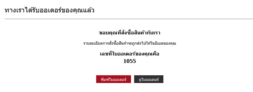หมายเหตุ ระบบจะมีการส่งอีเมลสรุปข้อมูลการสั่งซื้อไปให้ท่านและร้านค้า เพื่อให้ทางร้านรับทราบออเดอร์และดำเนินการจัดส่งสินค้าต่อไป